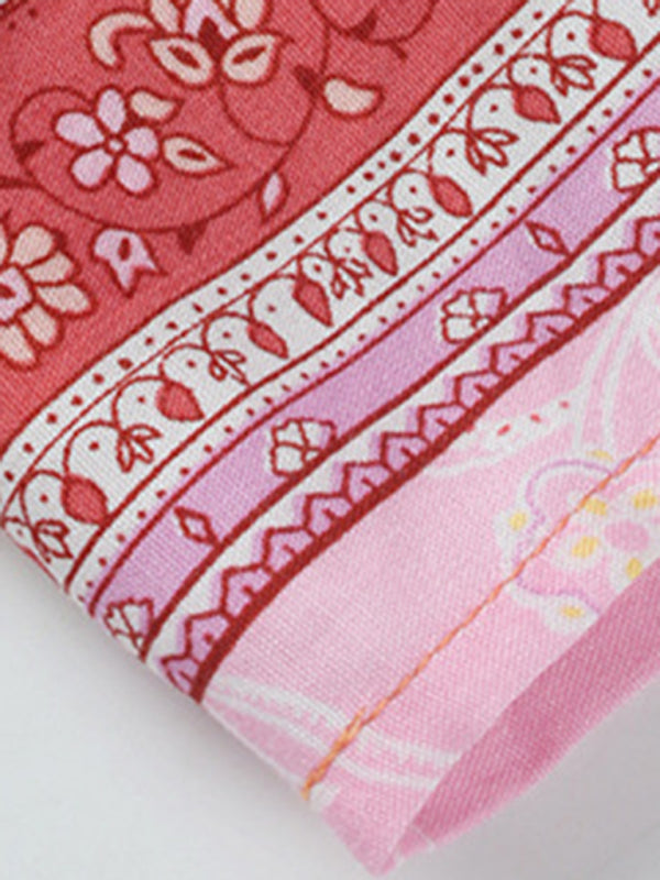 Bohemian Print Casual Resort Style Short Sleeve Ladies Top