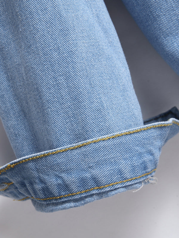 Denim jacket women street trendy loose raw edge cropped jacket