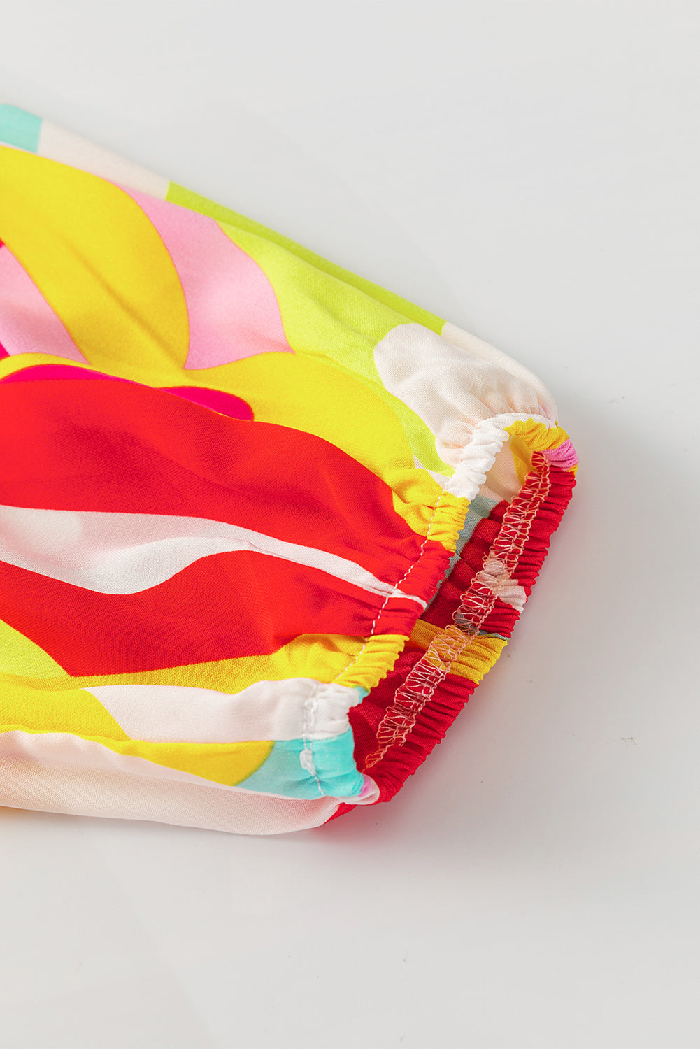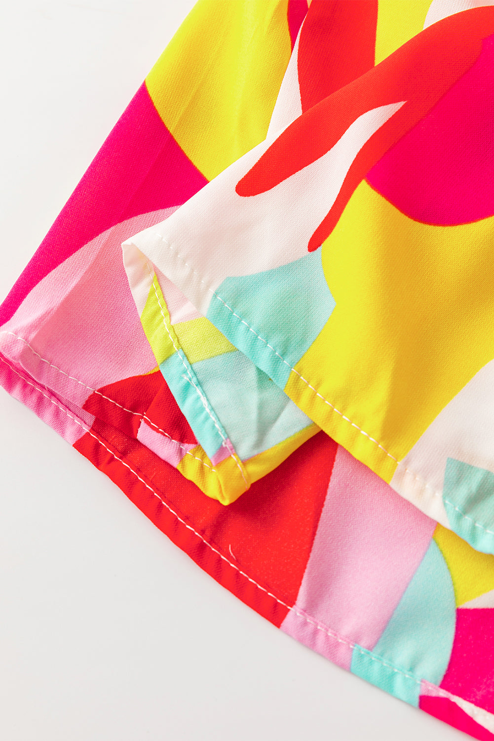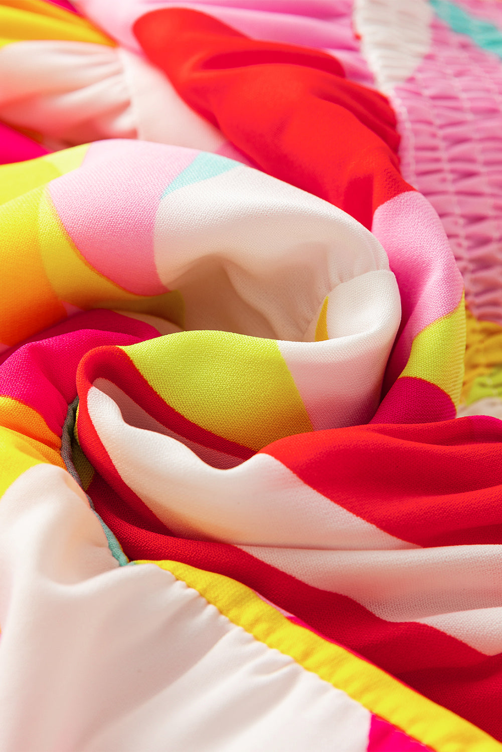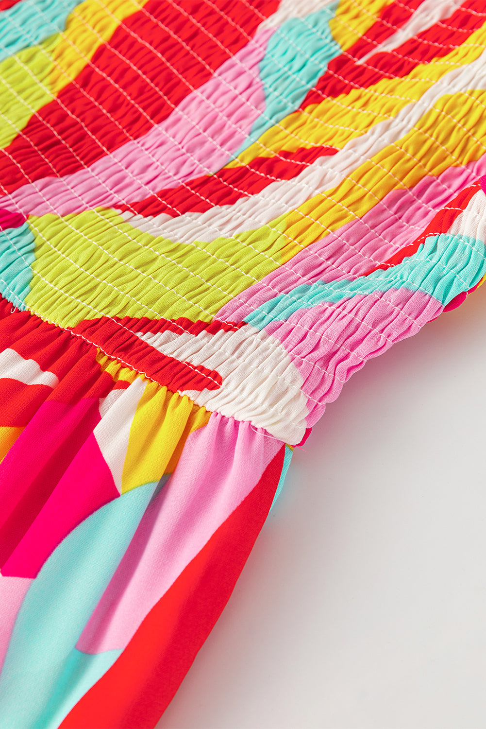 Multicolor Geometric Print Smocked Babydoll Mini Dress