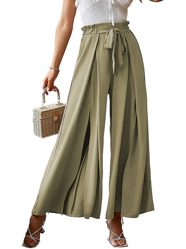 New bow loose high waist pleated wide leg pants with belt pants